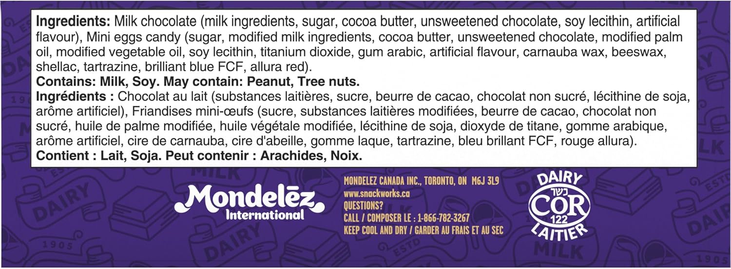 BELOVED BRAND: CADBURY DAIRY MILK is loved by Canadians, delivering quality and joy in every bite. Savour the simple pleasure in every piece. Proudly made in Canada from domestic and imported ingredients.