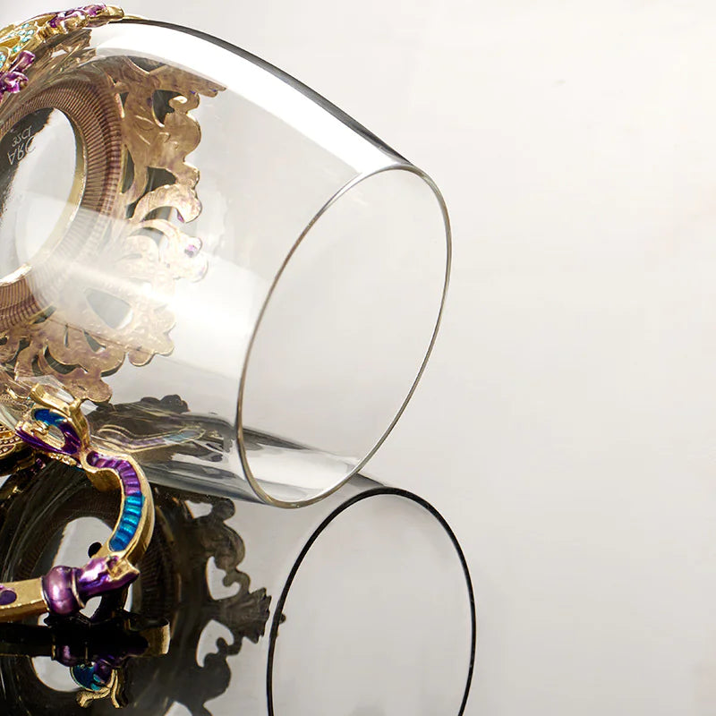 Heat-resistant Enamel Crystal Glass Tea Cup with Lid and Spoon, Floral Pattern, Gift Box Options