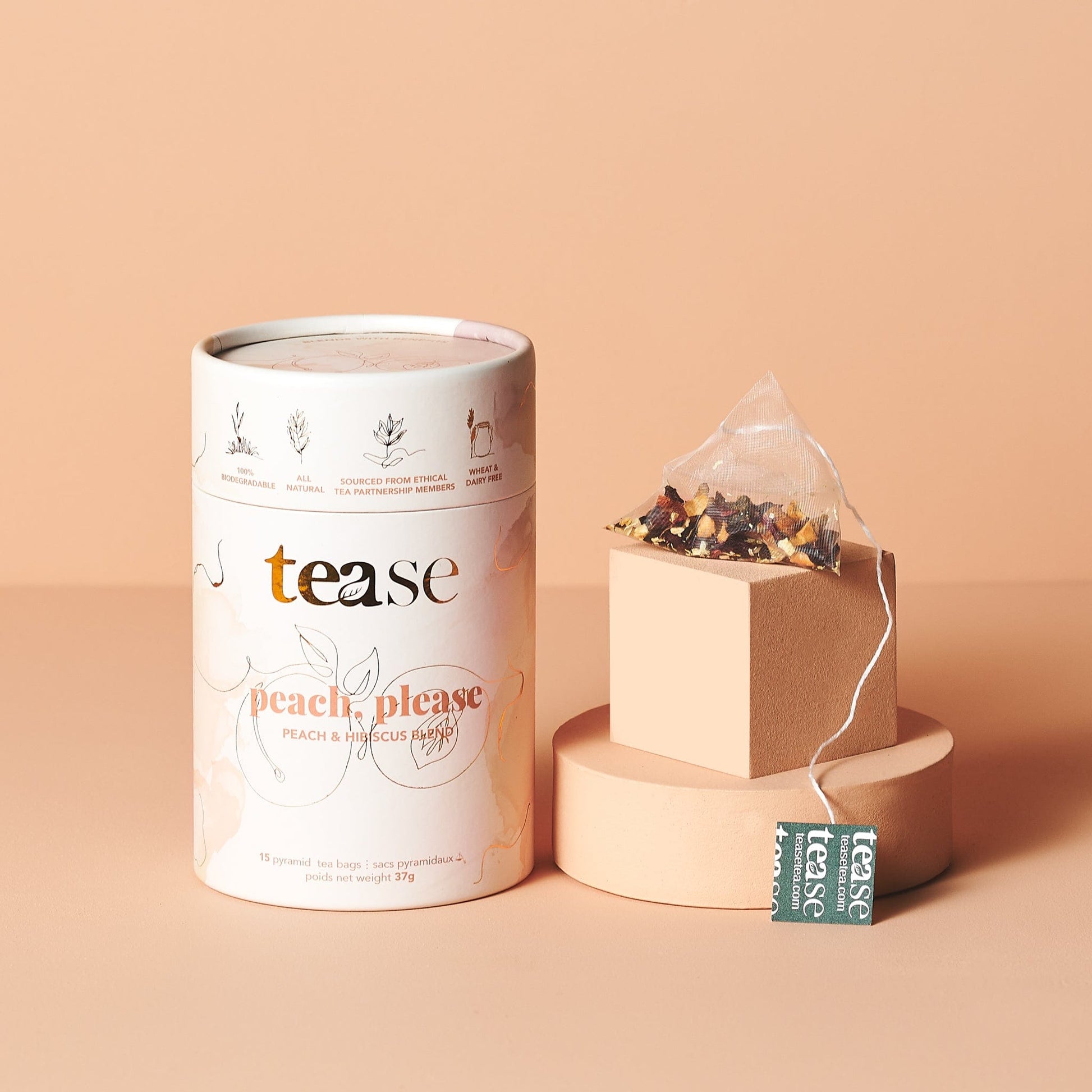 Ingredients: Apple + Hibiscus + Rosehip + Peach pieces, Chamomile petals, Natural flavours (organic compliant)