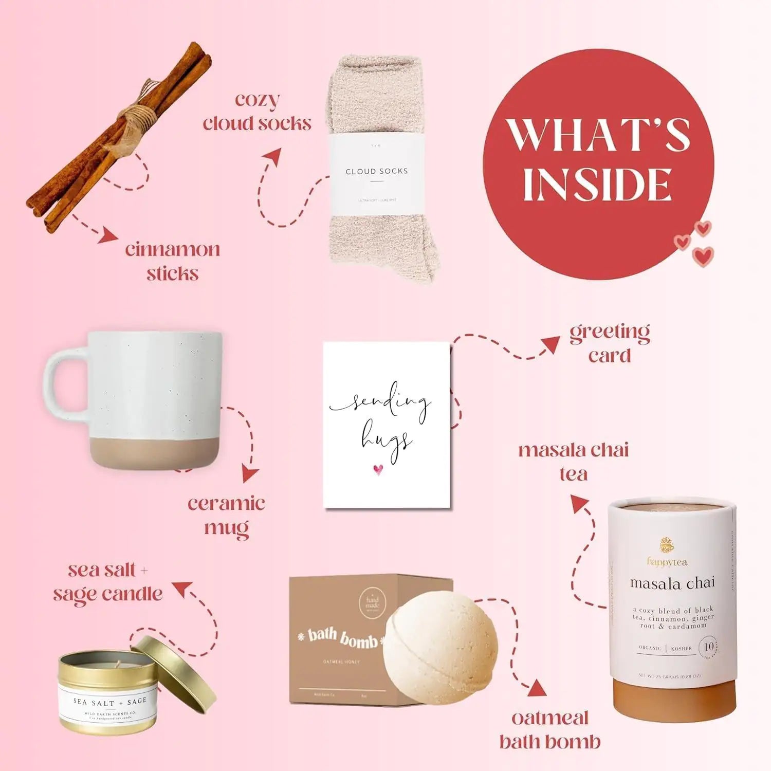 Send A Hug With Unboxme - Share warmth and care with Unboxme's Tea Gift Box with its thoughtful touches, making it a great choice for a get well gesture or a thoughtful care package for a dear friend in need. It goes beyond a mere tea set, it's a cozy embrace complete with plush socks and a fine ceramic mug. Tailored for a feminine touch, this tea gift box is a serene sanctuary, offering solace and a moment of relaxation.